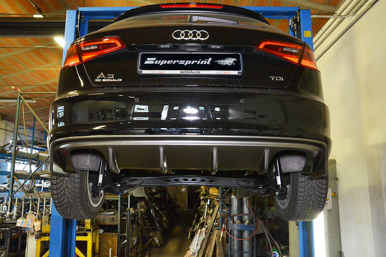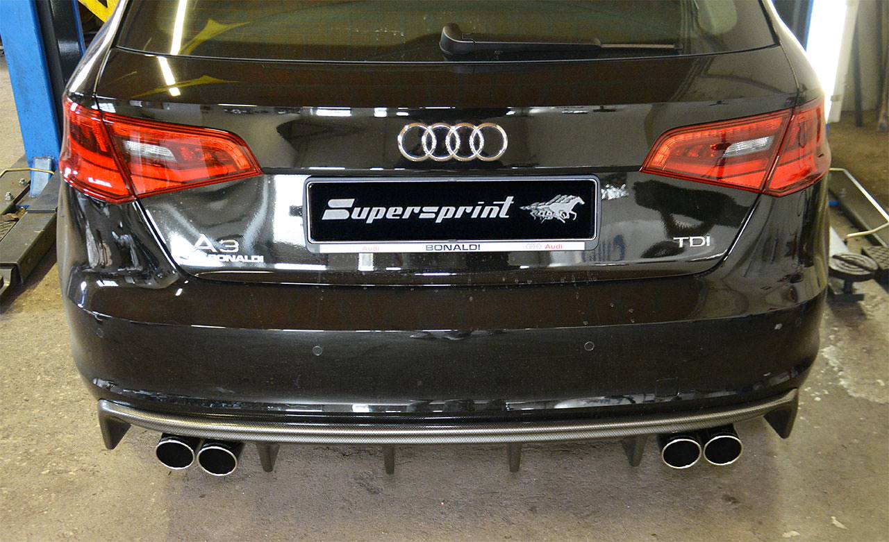 Supersprint 763204 und 765916 auf Audi A3 8va mit Rieger diffusor