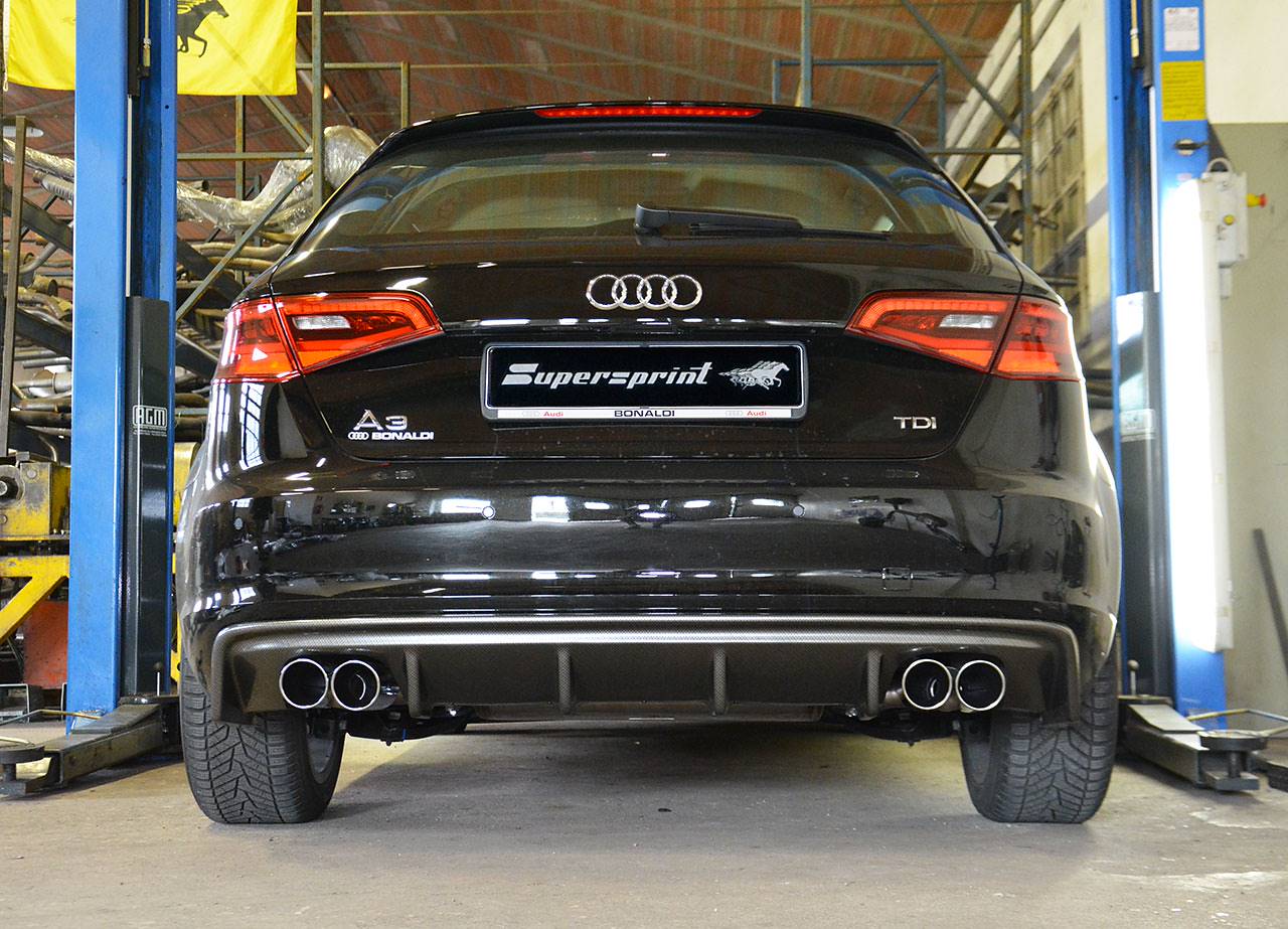 Supersprint sportauspuff 4x80mm und Rieger diffusor für Audi A3 8v / 8va