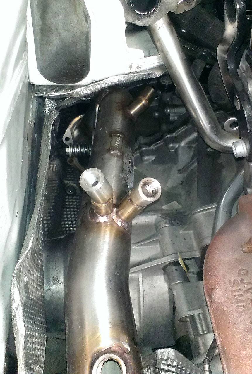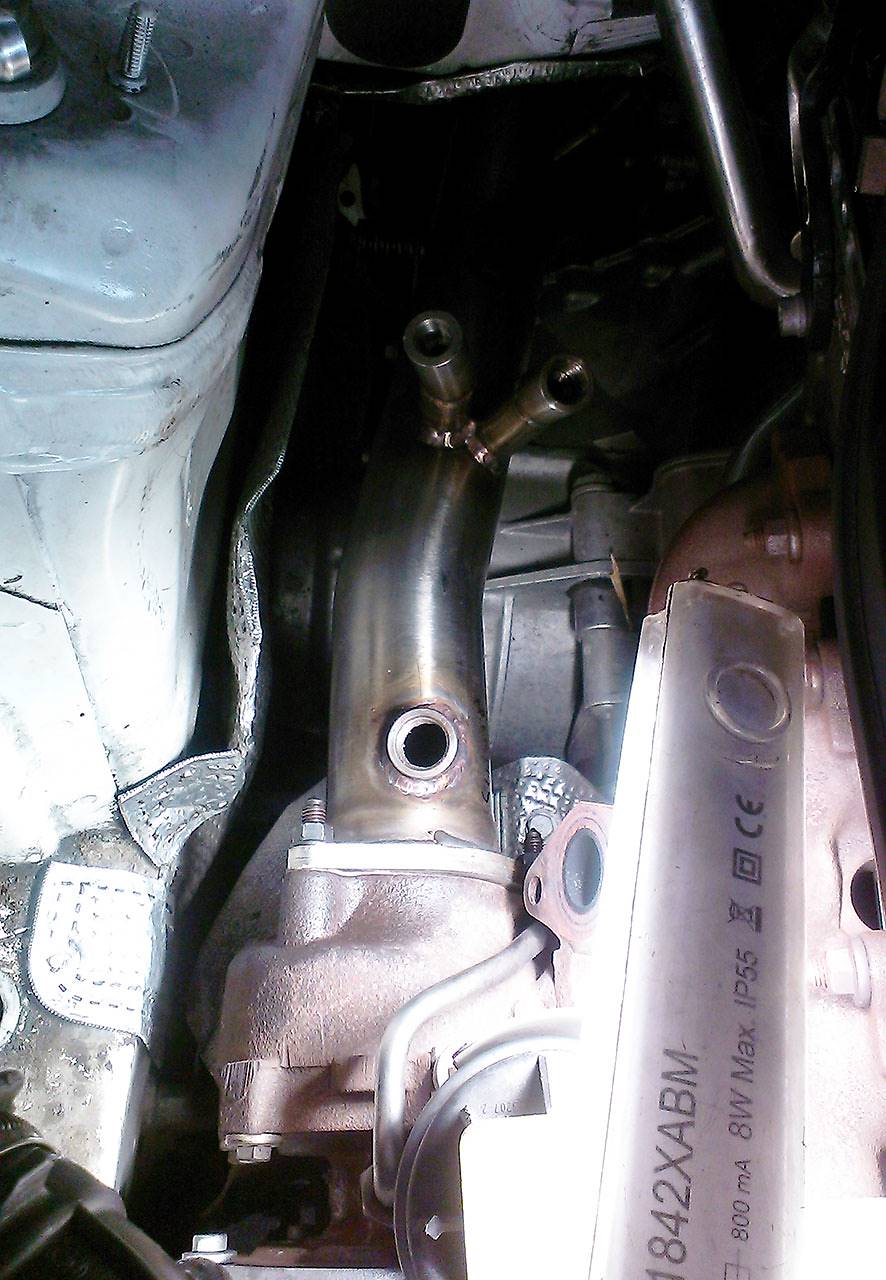 What happens fitting a turbo downpipe that replaces the OEM particulate filter on a diesel car?