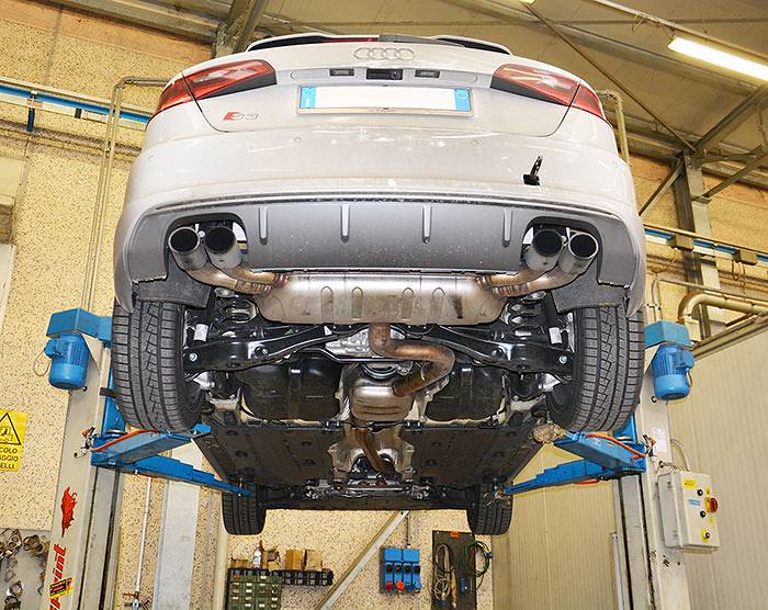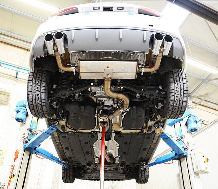 Dieses System beinhaltet einen Rohrsatz ab Turbolader (sog. Turbo-Downpipe) mit einem integrierten Hochleistungs-Metallkatalysator, ein Mittelrohr oder Mittelschalldämpfer, und einen Nachschalldämpfer. Dieser ist entweder mit einem 4-fach Endrohrsatz mit zwei Endrohr je Seite erhältlich (90 mm oder 100x75 mm).