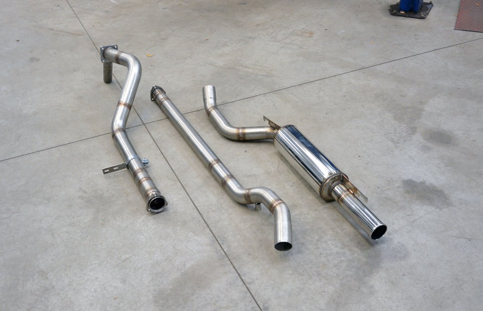 Supersprint bietet seine Oversize 63,5 mm-Komplettanlage an, die aus einem Turbo Downpipe, einem geraden, nicht schallgedämpften Mittelrohr und einem Sport-Endschalldämpfer besteht.