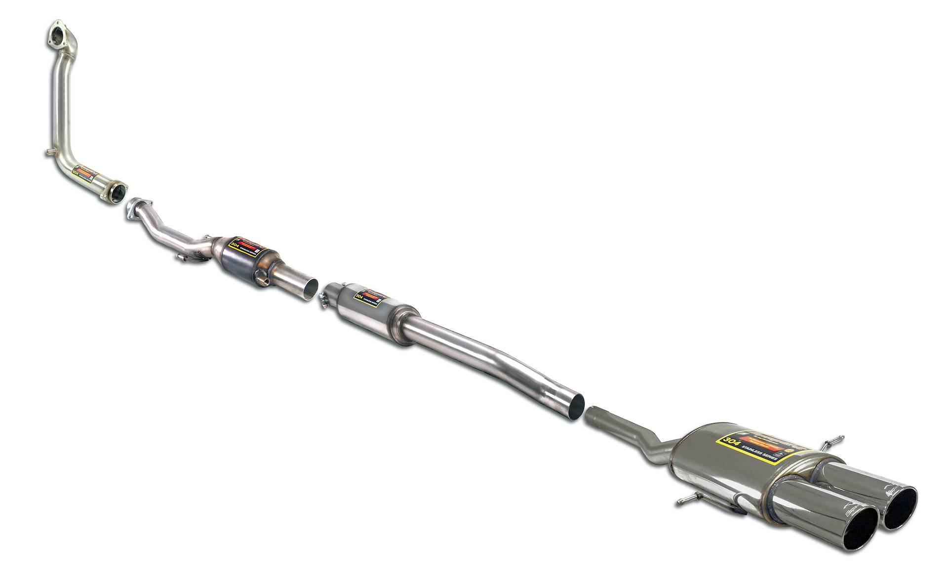This Supersprint downpipe setup is completed by larger diameter resonated mid section and rear muffler, for an unequalled increase in peak hp and midrange torque, also providing for a unique, deep sound with no droning.