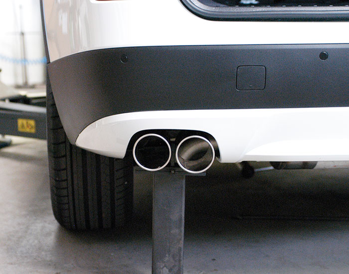 Anlage 100% Edelstahl "TWIN PIPE DESIGN" - mit Austritt links, für die Serienheckschürze