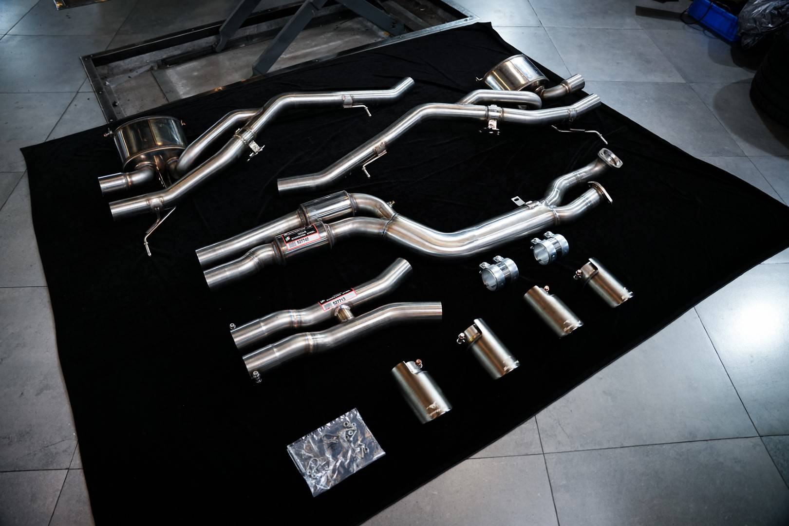 Anlage "J-Pipe" - (100mm Cross section - Mandrel bent) - für Serien Endschalldämpfer / M Performance - Ersetzt den Sekundär-Kat + OPF + MSD - Nur als kompletten Kit zu verwenden