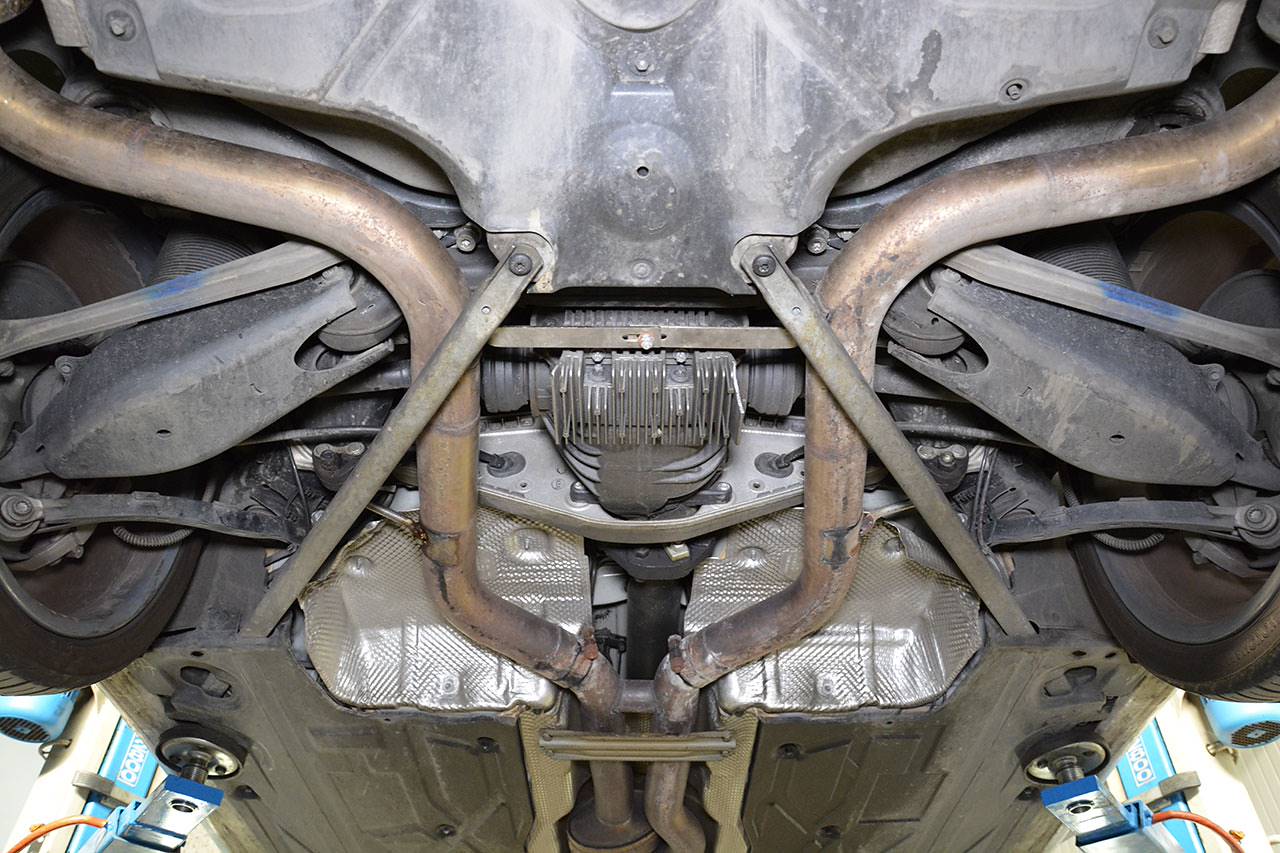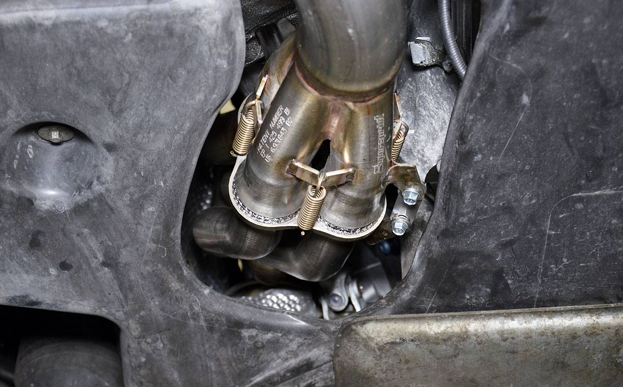Blame it on the awfully downsized, log-design exhaust manifolds, and on the restrictive, high-density cell, ceramic catalytic system.