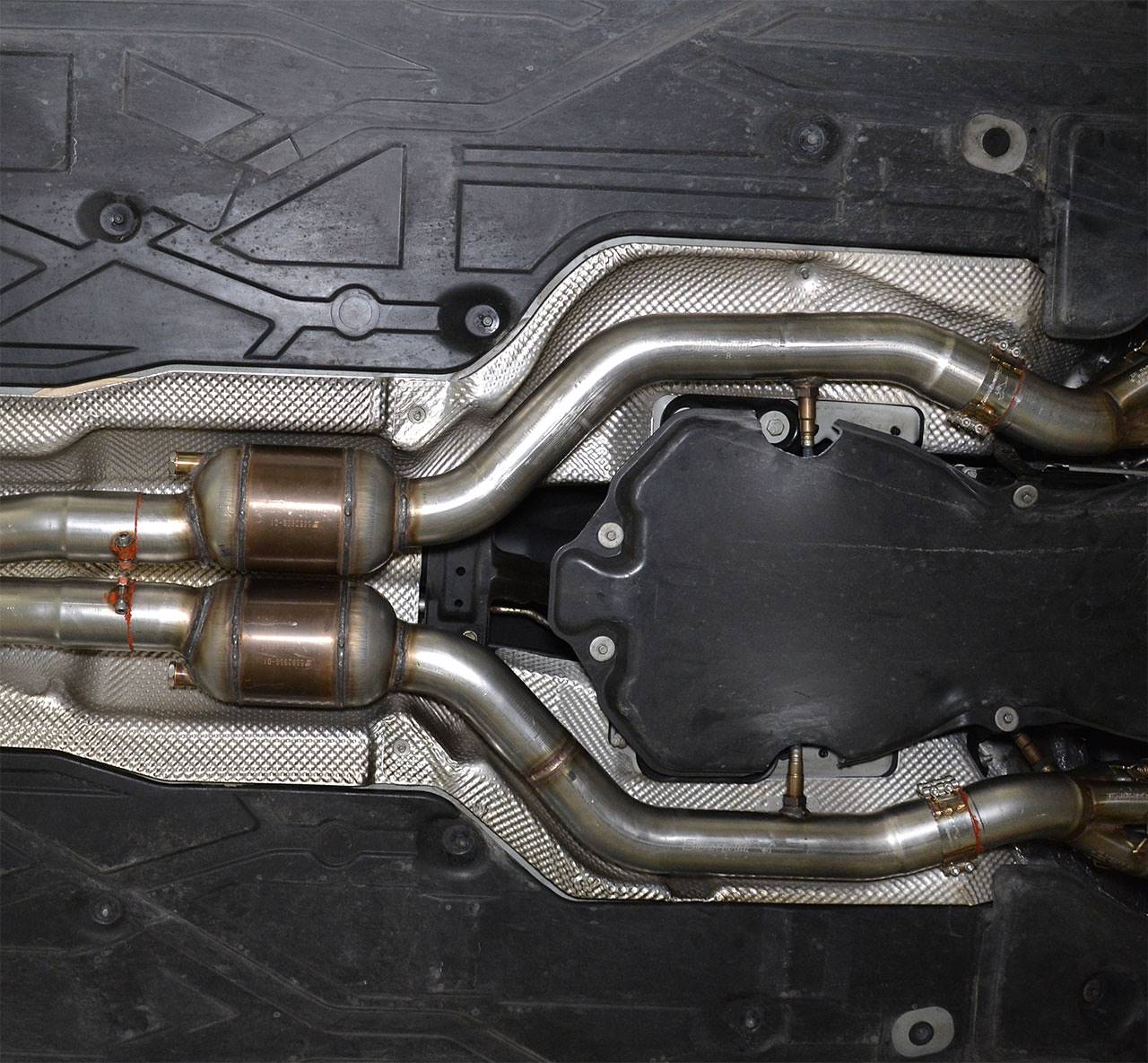 We have also developed a cat-back exhaust, to complement our headers; the mid section is available in resonated or straight pipe versions, and with optional Sport or F1 Race rear mufflers.