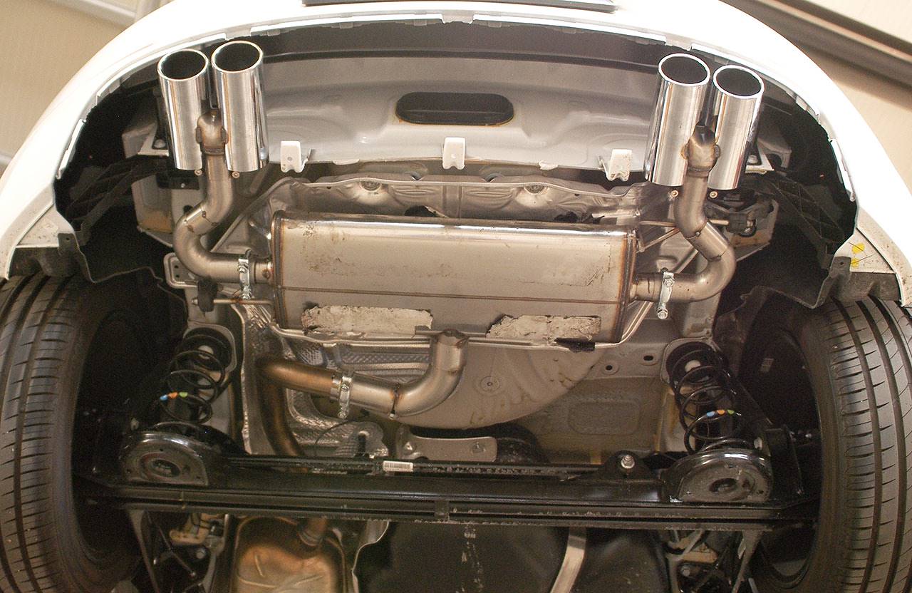 Anlage ab-Kat 100% Edelstahl Rechts - Links - Für Modelle mit Einzelradaufhängung hinten (Multilink) - Anpassung des Heckschürzendiffusors notwendig