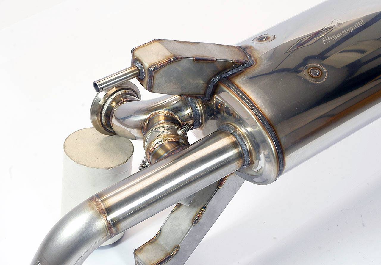 Das SUPERSPRINT Abgassystem, das in drei Optionen erhältlich ist, Sport, Race und Dual-Sound, bietet eine deutliche Verbesserung gegenüber dem massiven, überdimensionierten und verschachtelten Serien-Auspuff.