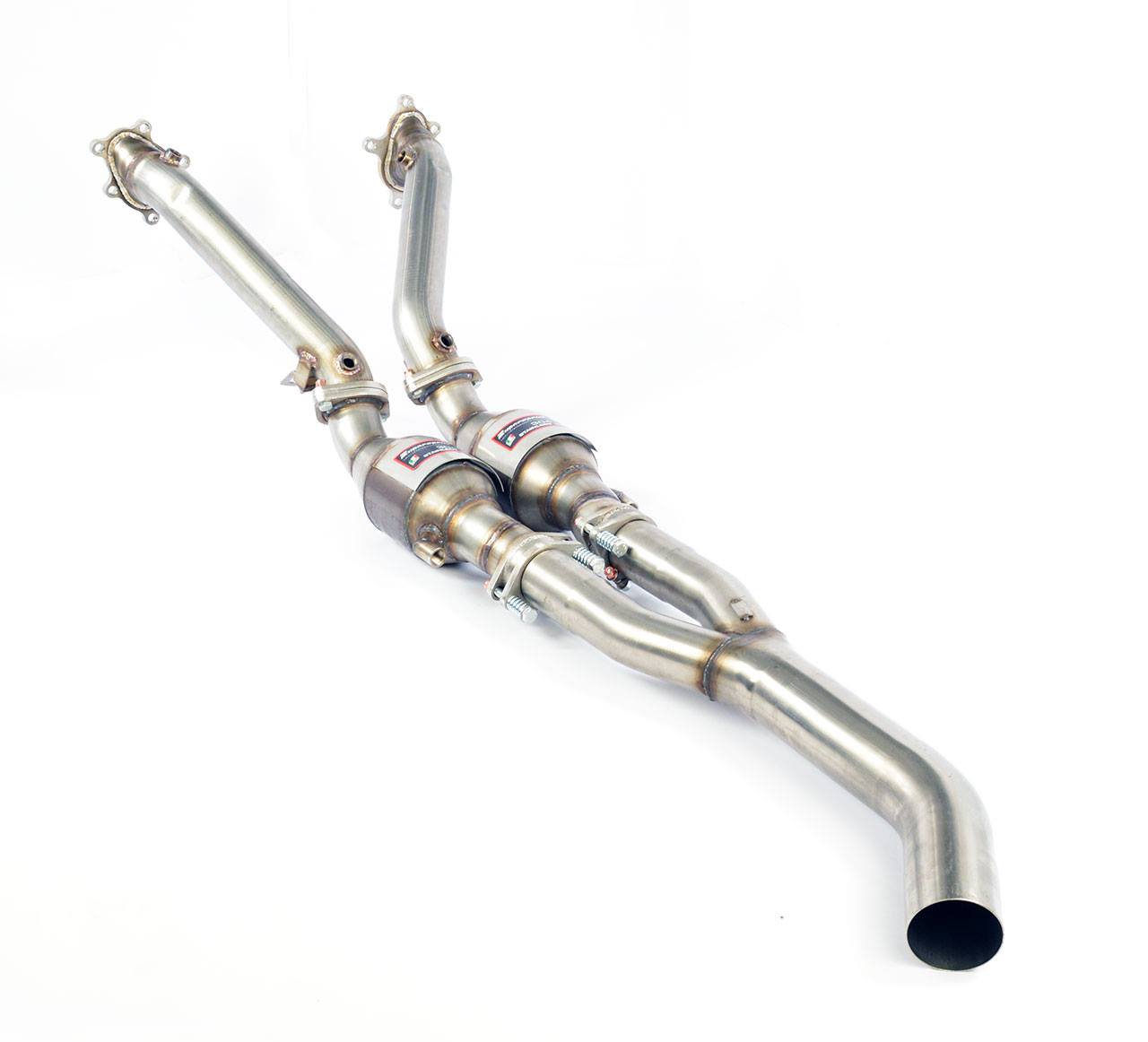 Das schlichte, leichte Design, die überdimensionierten, katlosen Supersprint R & L-Downpipes, die großvolumigen HJS Motorsport-Katalysatoren und die Einrohranordnung mit großem Durchmesser sorgen für eine massive Steigerung des Abgasdurchsatzes.