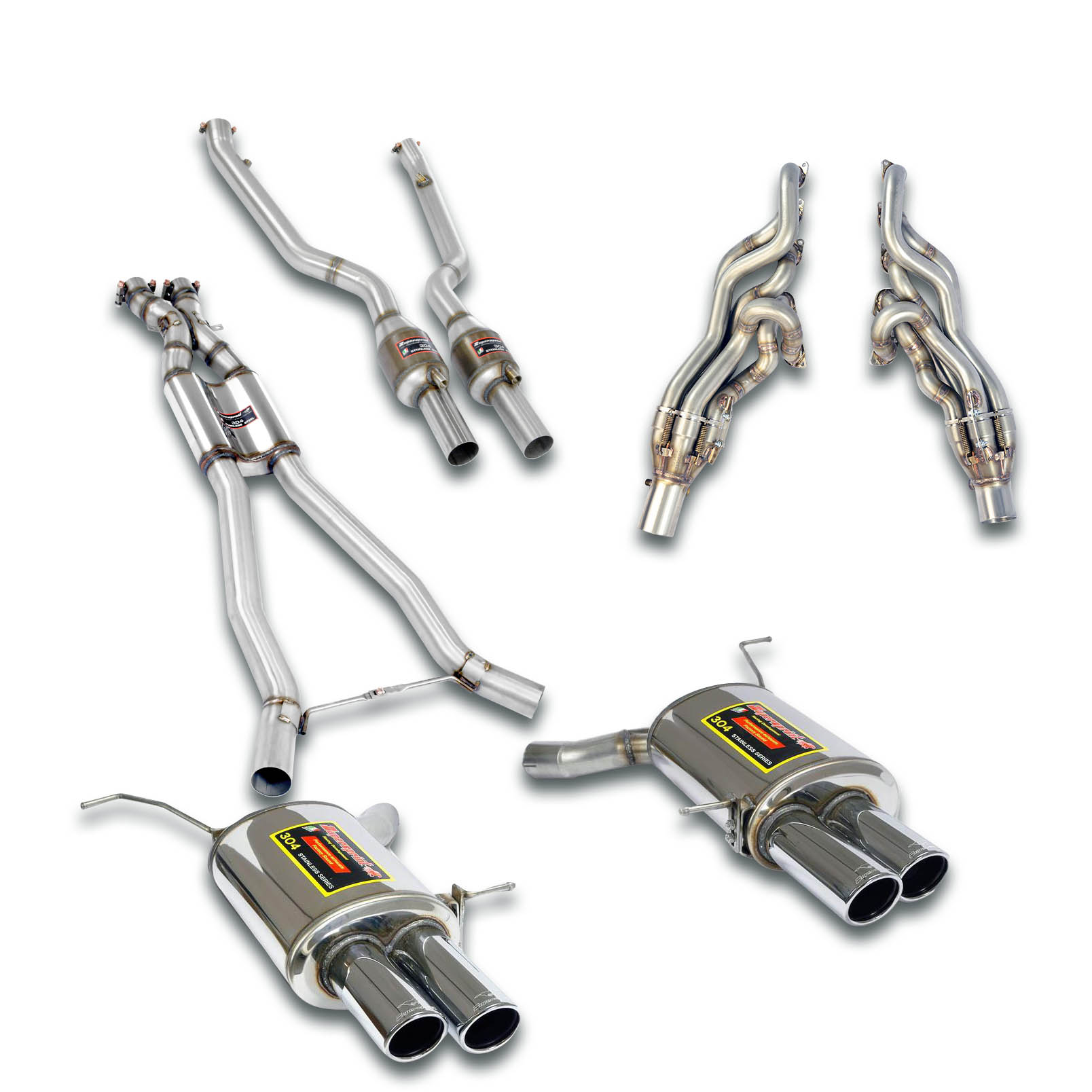 It takes great advantage from the Supersprint exhaust upgrades, due to the restrictive, power-robbing design of the initial BMW Factory section, in particular the crushed layout of the stock headers with their built-in catalytics and the heavily compromised stock primariy pipes.