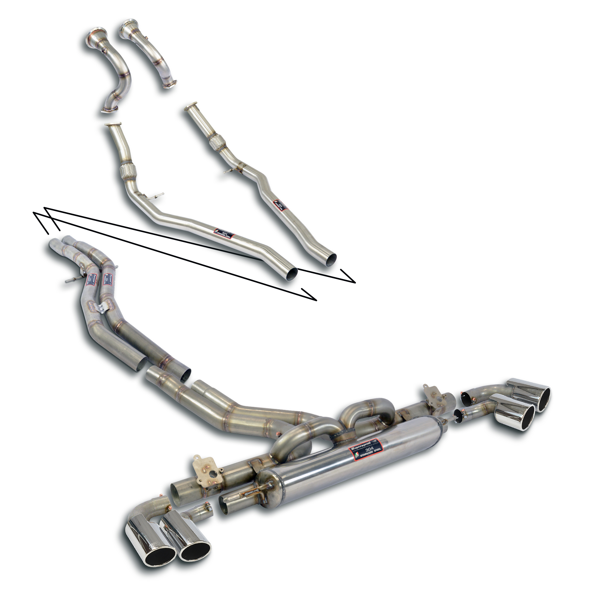 100% Stainless steel system for the stock centre exhaust