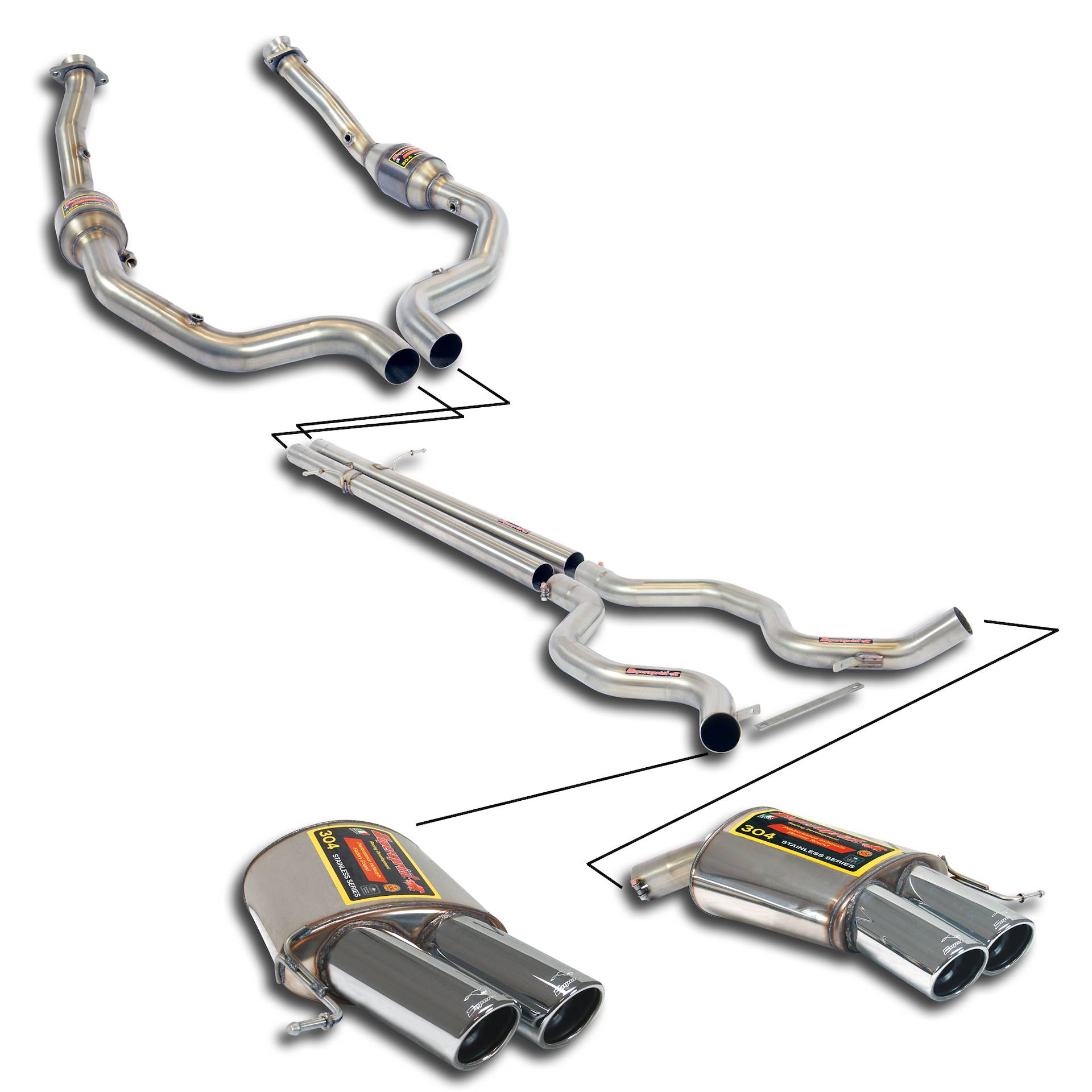 Downpipe kit 100% Stainless steel, Oversize 2 x Ø65mm for OEM Cat.-Back