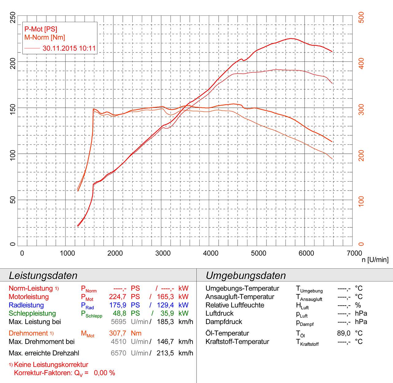 La vettura usata per lo sviluppo, una 180cv, si è rivelata essere leggermente più performante del dichiarato, con 191 cv e 297nm di serie, contro i 180cv e 280nm dati dalla casa.