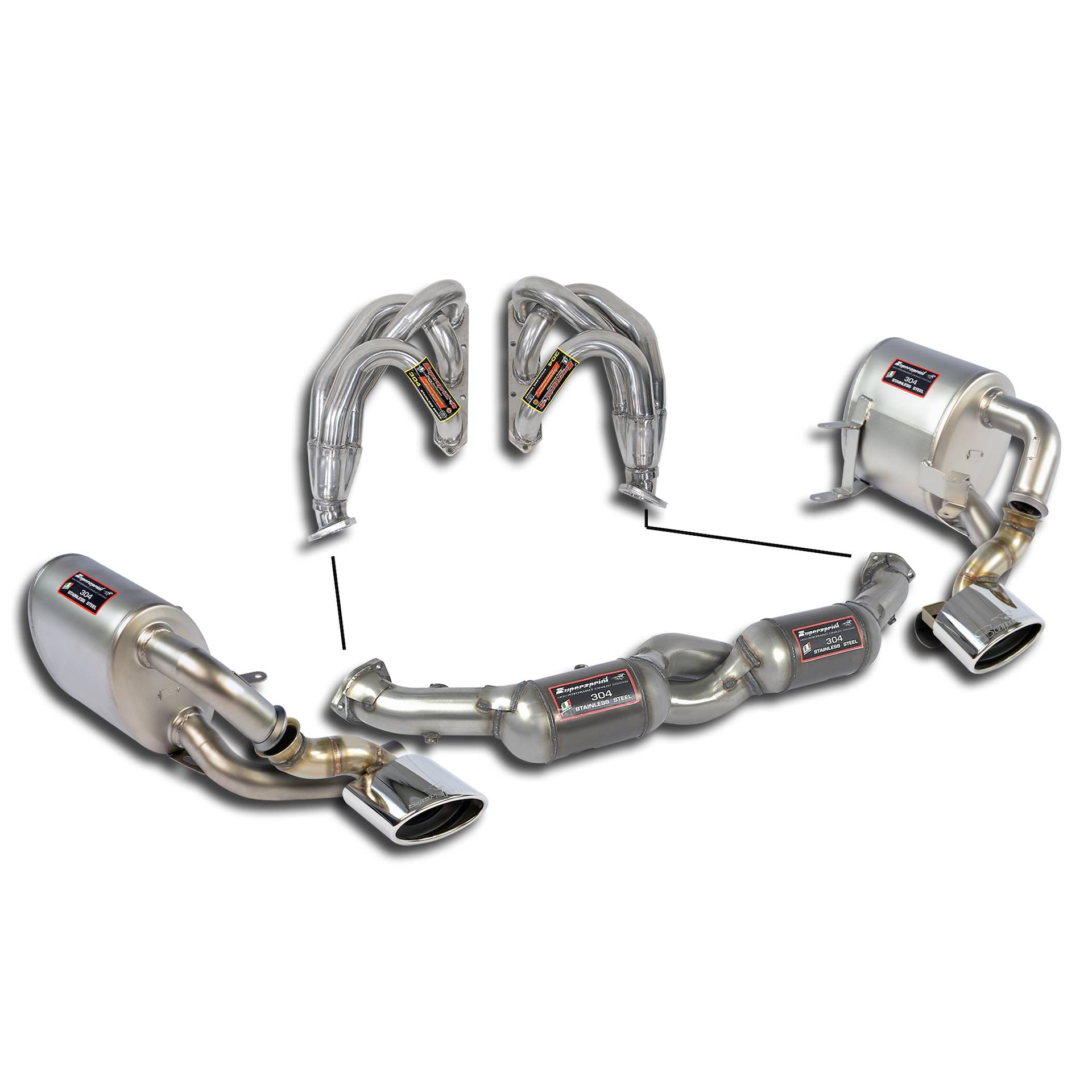Supersprint informa che detti impianti sono da impiegare esclusivamente per uso agonistico e che il loro utilizzo, se non accompagnato da opportune modifiche al sistema di gestione elettronica del motore, potrebbe causare malfunzionamenti. Tutte le modifiche sono da eseguirsi esclusivamente da parte di personale qualificato, sotto la responsabilità del proprietario dell’auto e con costi interamente a suo carico.