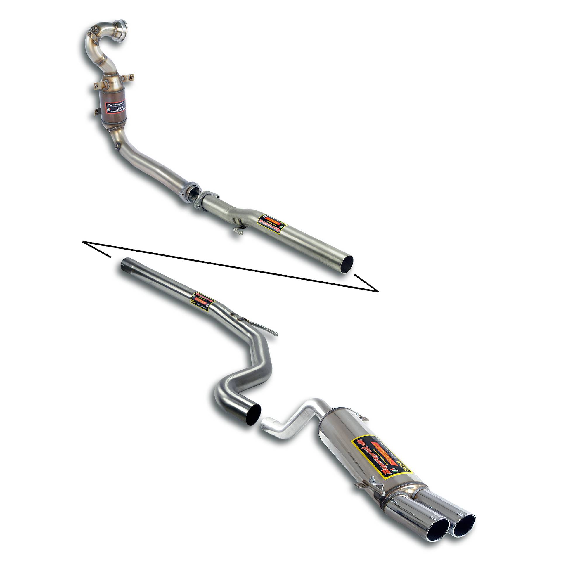 Supersprint informa che detti impianti sono da impiegare esclusivamente per uso agonistico e che il loro utilizzo, se non accompagnato da opportune modifiche al sistema di gestione elettronica del motore, potrebbe causare malfunzionamenti. Tutte le modifiche sono da eseguirsi esclusivamente da parte di personale qualificato, sotto la responsabilità del proprietario dell’auto e con costi interamente a suo carico.