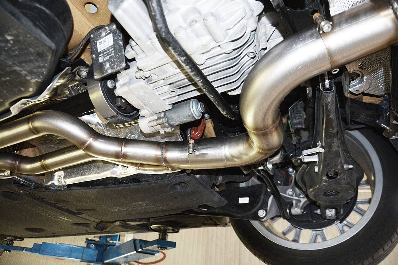 Dettaglio tubi centrali impianto Supersprint Twin Pipe Design per Audi TTS Mk3 8S