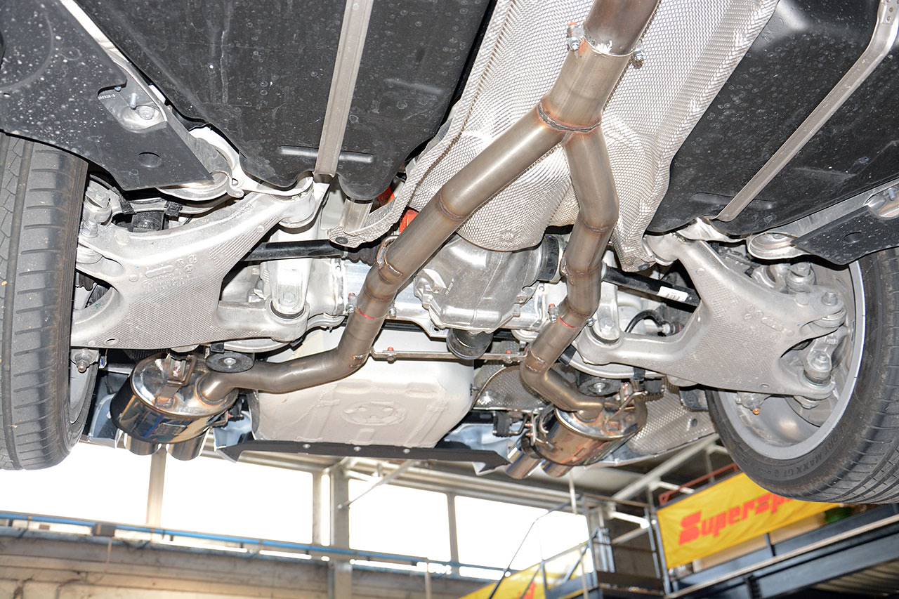 Scarico Supersprint composto da tubo centrale Y-Pipe 982943, posteriore destro OO90 982956 e posteriore sinistro OO90 982976 su BMW F10 / F11 528i