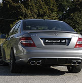Nuovo sviluppo per il modello di punta dell'ultima generazione della gamma Mercedes C W204, equipaggiato con il moderno motore V8 AMG 6.2l. Marmitte posteriori studiate per migliorare, oltre al sound ed alla resa del motore, anche il rendimento aerodinamico, grazie alla particolare sezione esterna dei corpi silenziatori, che varia dall'entrata all'uscita rispettivamente da ellittica a rettangolare-appiattita. Terminali di uscita dal nuovo, innovativo design, mutuato da quelli appena sviluppati per la Mercedes SL 63 AMG. Disegni, attrezzature e stampi per la produzione realizzati internamente alla ditta. Sistema di fissaggio con ampia possibilità di regolazione, per garantire una precisione millimetrica in fase di montaggio. Parte centrale silenziata, con omologazione CEE, al pari di quella posteriore. Sviluppo di collettori e catalizzatori metallici specifici già intrapreso ed a buon punto, in fase di ultimazione, per un sostanziale incremento di prestazioni.