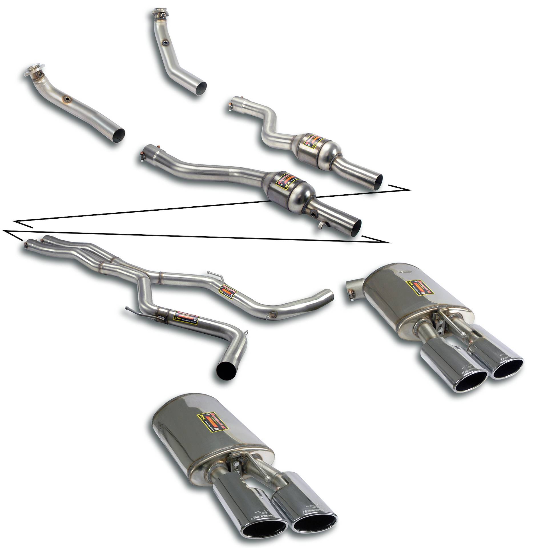 Supersprint informa che detti impianti sono da impiegare esclusivamente per uso agonistico e che il loro utilizzo, se non accompagnato da opportune modifiche al sistema di gestione elettronica del motore, potrebbe causare malfunzionamenti. Tutte le modifiche sono da eseguirsi esclusivamente da parte di personale qualificato, sotto la responsabilità del proprietario dell’auto e con costi interamente a suo carico.